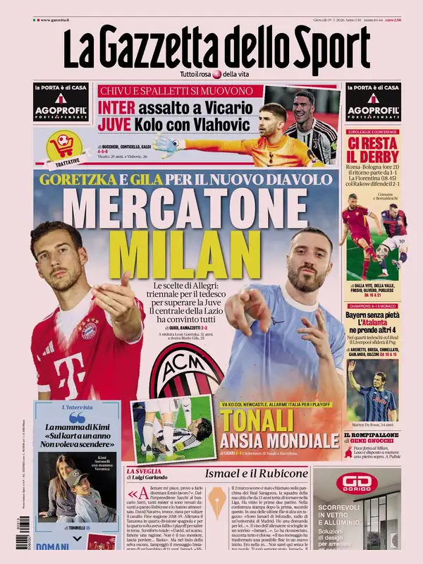 Le prime pagine dei quotidiani sportivi in edicola oggi, giovedì 19 marzo 2026. L'articolo Le...
