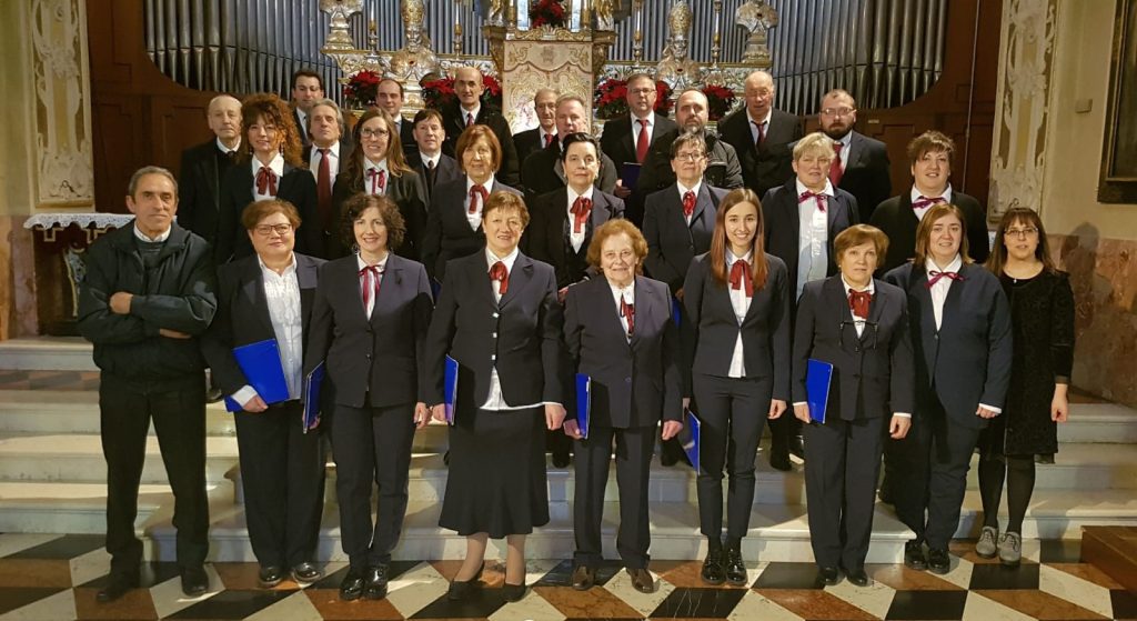 In contemporanea, un altro evento corale nella chiesa parrocchiale di Sant’Antonio a Peia. Qui, la locale Corale (seconda e ultima foto sotto) dedicata al patrono, diretta da Cristina Belotti e accompagnata all’organo da Paolo Noris, offrirà una performance che sottolinea l’importanza e la continuità della tradizione corale nella comunità.