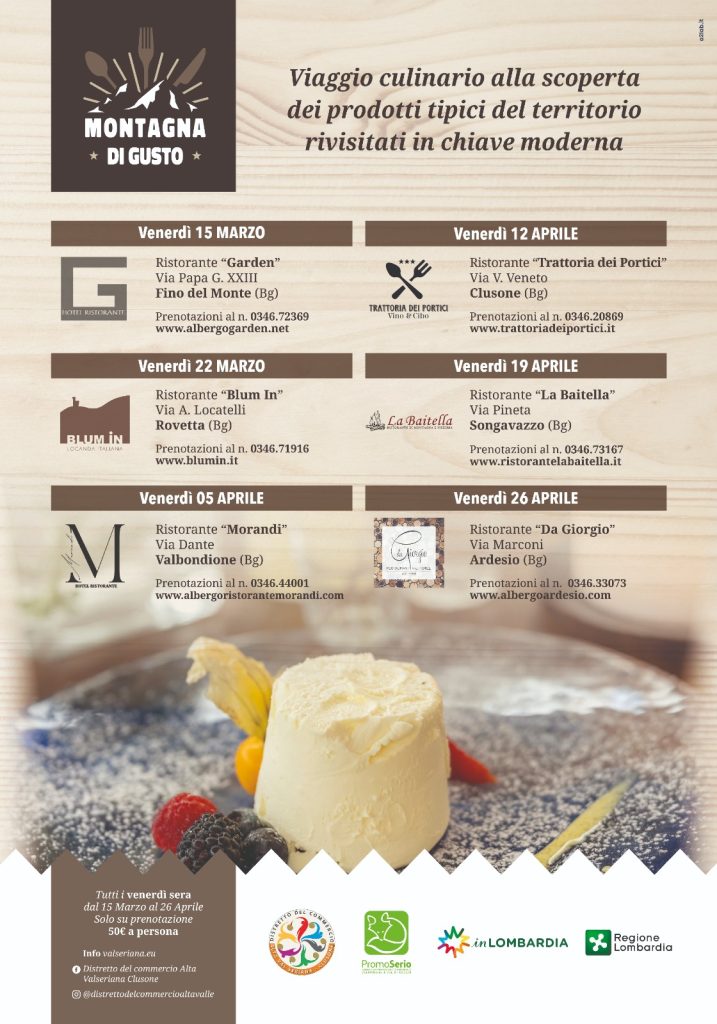 L'edizione 2024 della rassegna enogastronomica alla (ri)scoperta dei sapori di Valle Seriana e Val di Scalve: dal 15 marzo al 26 aprile
