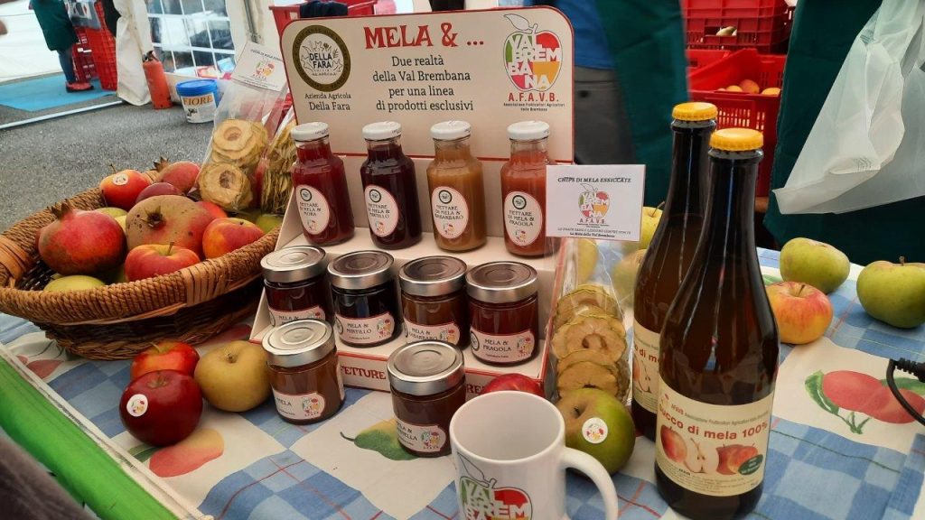 In occasione della festa, l’Azienda Agricola Della Fara di San Giovanni Bianco presenta una novità: sfoglie di frutta disidratata a base di Mela Val Brembana, prodotte senza zuccheri aggiunti e abbinate a ingredienti come noce, mirtillo, mora e fragola.