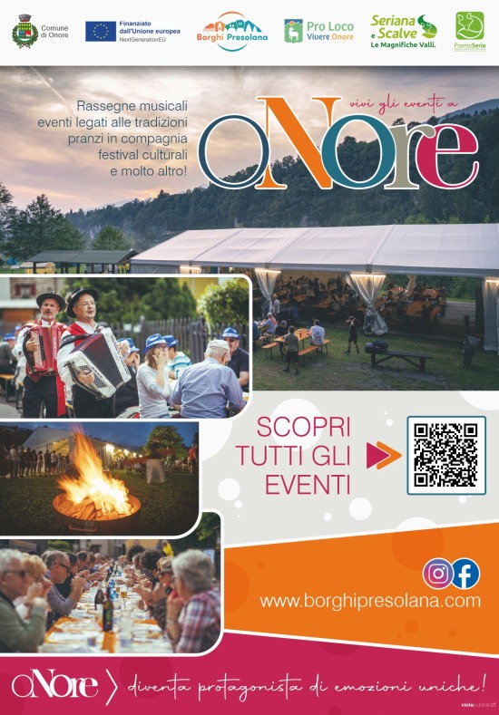 Per seguire tutti gli eventi e scoprire tutte le novità, si può visitare la pagina Instagram @proloco_vivere_onore o consultare l’opuscolo disponibile nei vari esercizi pubblici di Onore, presente negli allegati all’articolo.