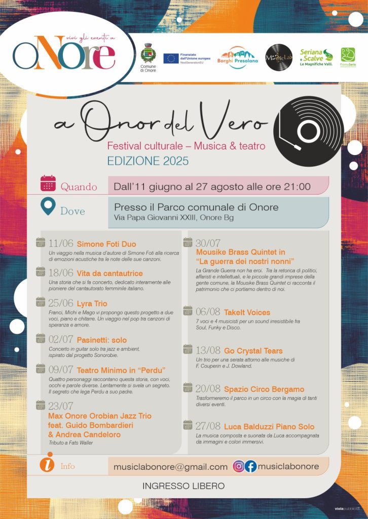 Onore è pronto ad accogliere residenti e turisti con un’estate ricca di eventi, cultura e momenti di socialità per tutte le età. Il Sindaco Ettore Schiavi ha sottolineato l’importanza di questa stagione, con un numero di eventi senza precedenti: “Quest’anno Onore vivrà un’estate davvero straordinaria, con un numero di eventi mai così ricco. L’Amministrazione è orgogliosa di promuovere appuntamenti di grande valore culturale e sociale”. La programmazione include una vasta gamma di attività, dai festival musicali e teatrali alle passeggiate in natura e alle tradizioni locali.