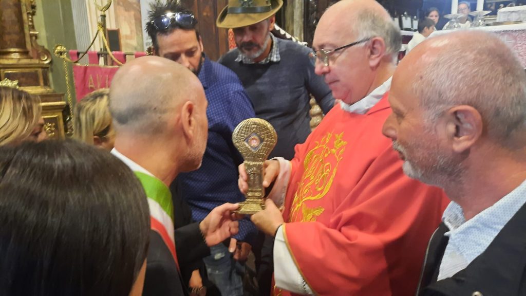 Domenica 14 settembre la chiesa parrocchiale di Sant’Andrea a Cazzano Sant’Andrea non è riuscita a contenere i numerosi fedeli accorsi per la messa di saluto a don Egidio Rivola, dopo dieci anni di servizio in Val Gandino. Nel corso della celebrazione è stata presentata per la prima volta anche la reliquia di San Carlo Acutis – alcuni capelli giunti da Assisi – custodita in un reliquiario di bronzo e destinata all’oratorio intitolato al giovane santo dal dicembre 2024.