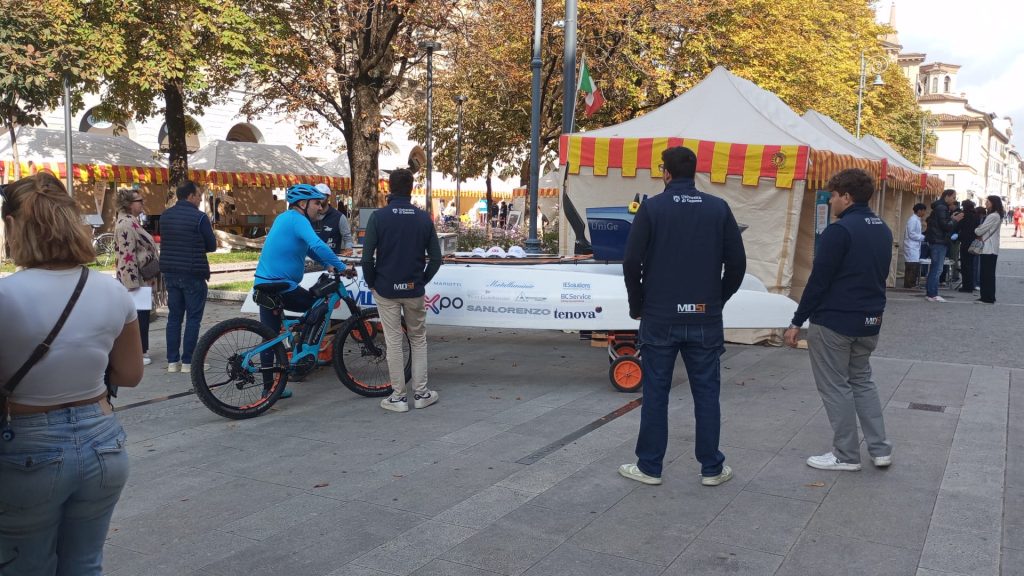 Ma nel giorno di festa del salotto buono cittadino, votato all’approfondimento dei temi legati alla sostenibilità, ci sono altre curiosità. Una, decisamente fuori porta e fuori dal sentire comune bergamasco, il catamarano elettrico a cura delle tre facoltà di Ingegneria dell’Università di Genova. Il progetto elettra, un offshore ricaricabile che partecipa ai campionati studenteschi: “Siamo arrivati secondi dietro Bologna, l’ateneo più antico in Italia, ma loro avevano un motore da 60 kilowatt e noi da 10”, ci spiegano sorridendo gli ingegneri rivieraschi del domani. Il tutto condito da una grande affluenza di pubblico, baciato dal sole del Quadriportico fin dal primo mattino.