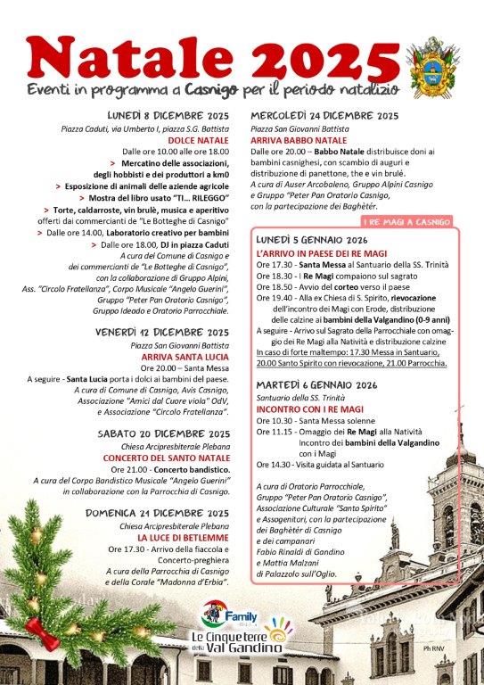 Per ulteriori dettagli sul programma completo delle festività natalizie a Casnigo, è possibile consultare il sito web ufficiale www.lecinqueterredellavalgandino.it. Per informazioni, è anche possibile contattare il Comune di Casnigo.