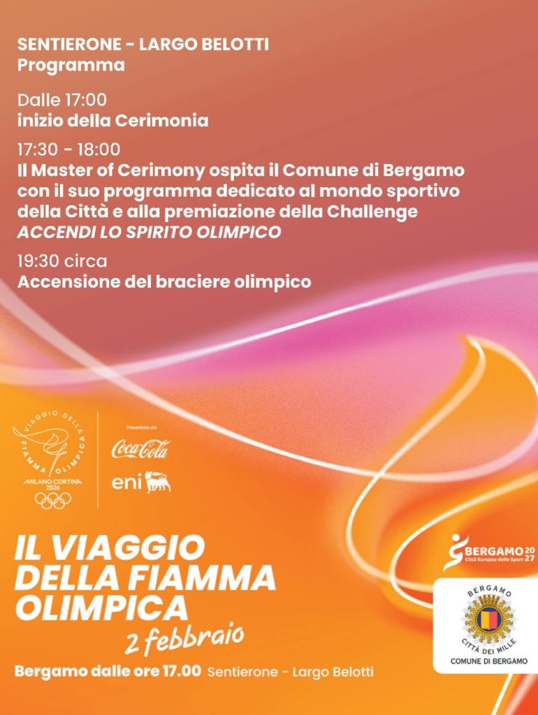 Questo evento non rappresenta solo il passaggio della Fiamma Olimpica, ma segna anche un passo importante verso il futuro. Con l’arrivo della Fiamma, Bergamo si avvicina a diventare Città Europea dello Sport nel 2027. La Fiamma Olimpica diventa quindi un simbolo di orgoglio per la città, che crede fermamente nel valore dello sport come strumento di crescita, salute e inclusione sociale. Il passaggio della Fiamma rinforza ulteriormente questo impegno, alimentando lo spirito olimpico che caratterizzerà Bergamo nei prossimi anni.