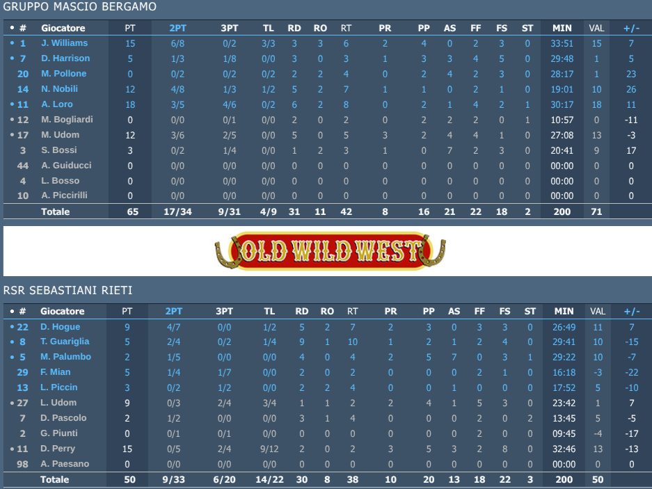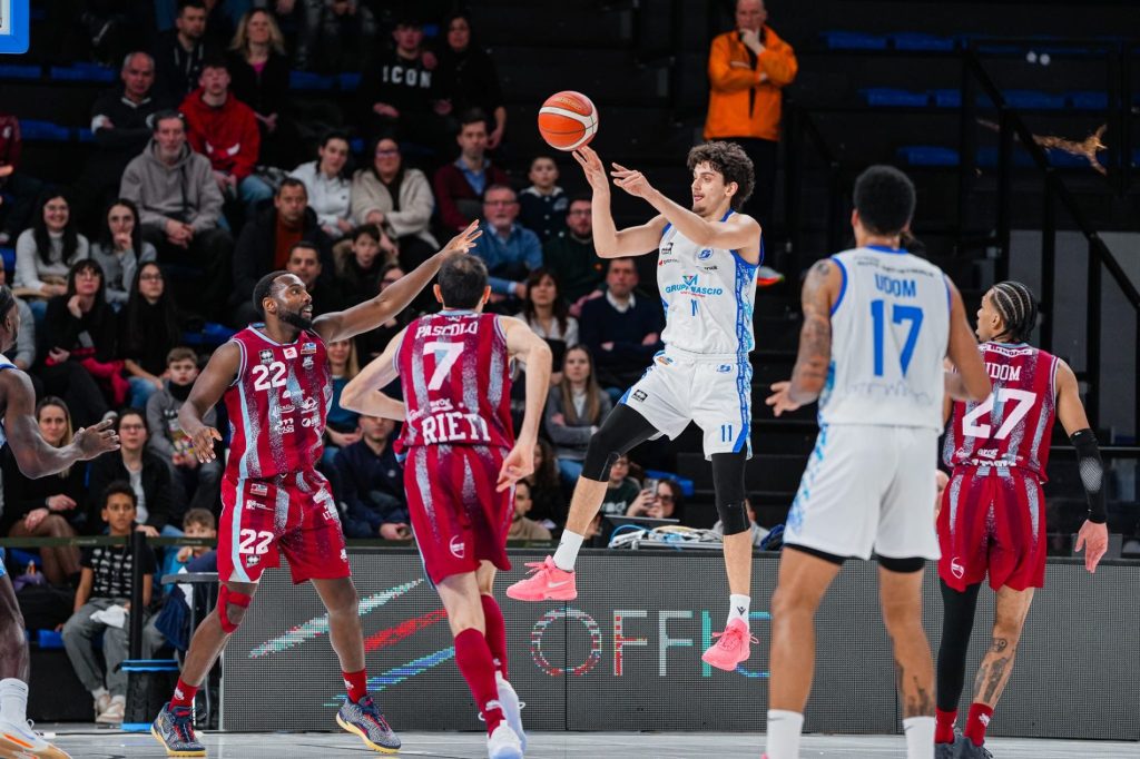 Nonostante un avvio difficile, con Rieti che è riuscita a sfruttare bene i suoi due lunghi in isolamento e in gioco a palla dentro, la Gruppo Mascio Bergamo ha recuperato velocemente. Un canestro fondamentale da Loro ha permesso di riaprire la partita, mentre Mattia Udom ha avuto un ruolo cruciale con un’ottima gestione del gioco, assistendo e segnando lungo il 21-3 di parziale. La partita è stata caratterizzata anche dal ritorno in campo del capitano Bossi, fondamentale nella costruzione del gioco e nel recupero del vantaggio.